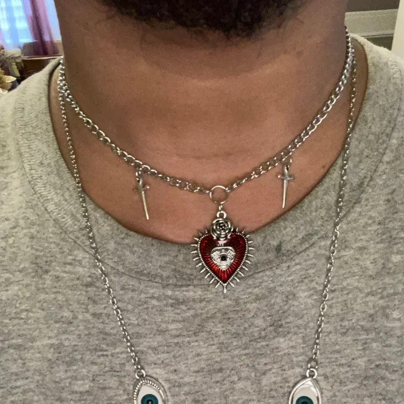Goth Gothic Peach Heart Flower Sword Eye Cross Pendant Choker Chain