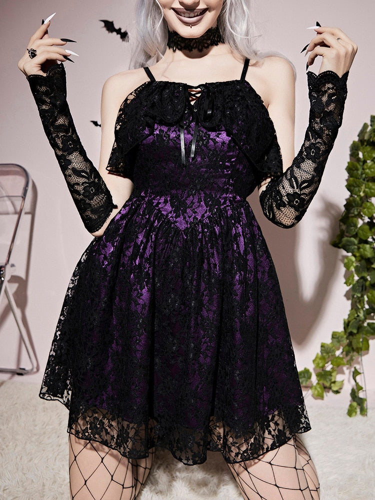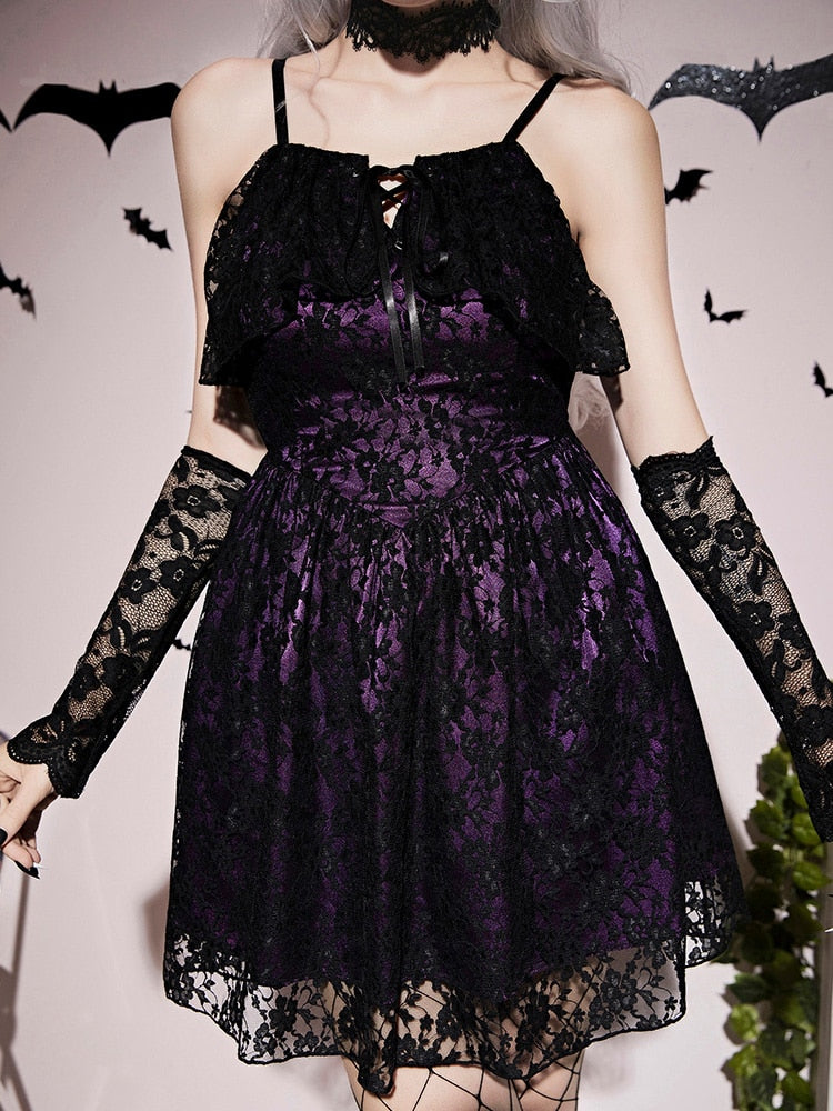 Purple Gothic Lace Up Back Cami Dress Halloween Costume Without Gloves